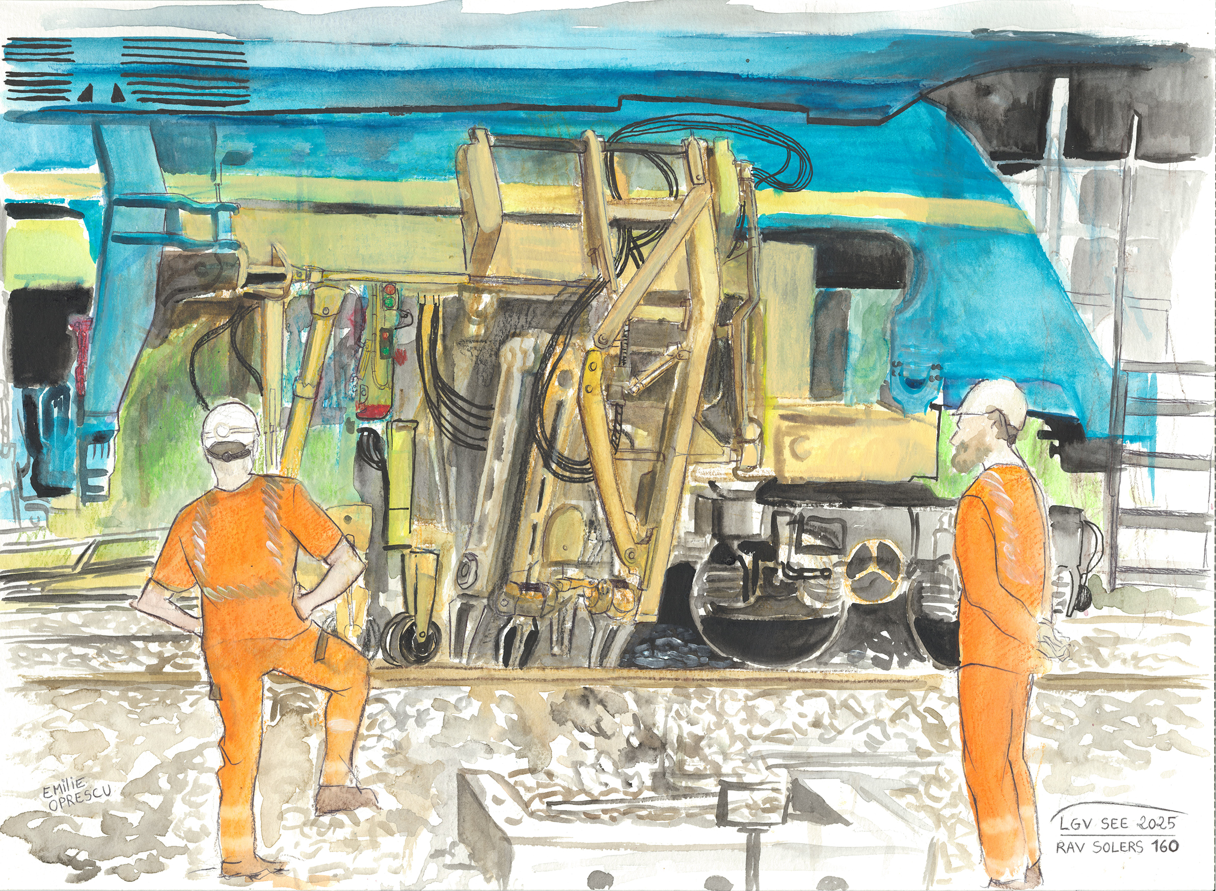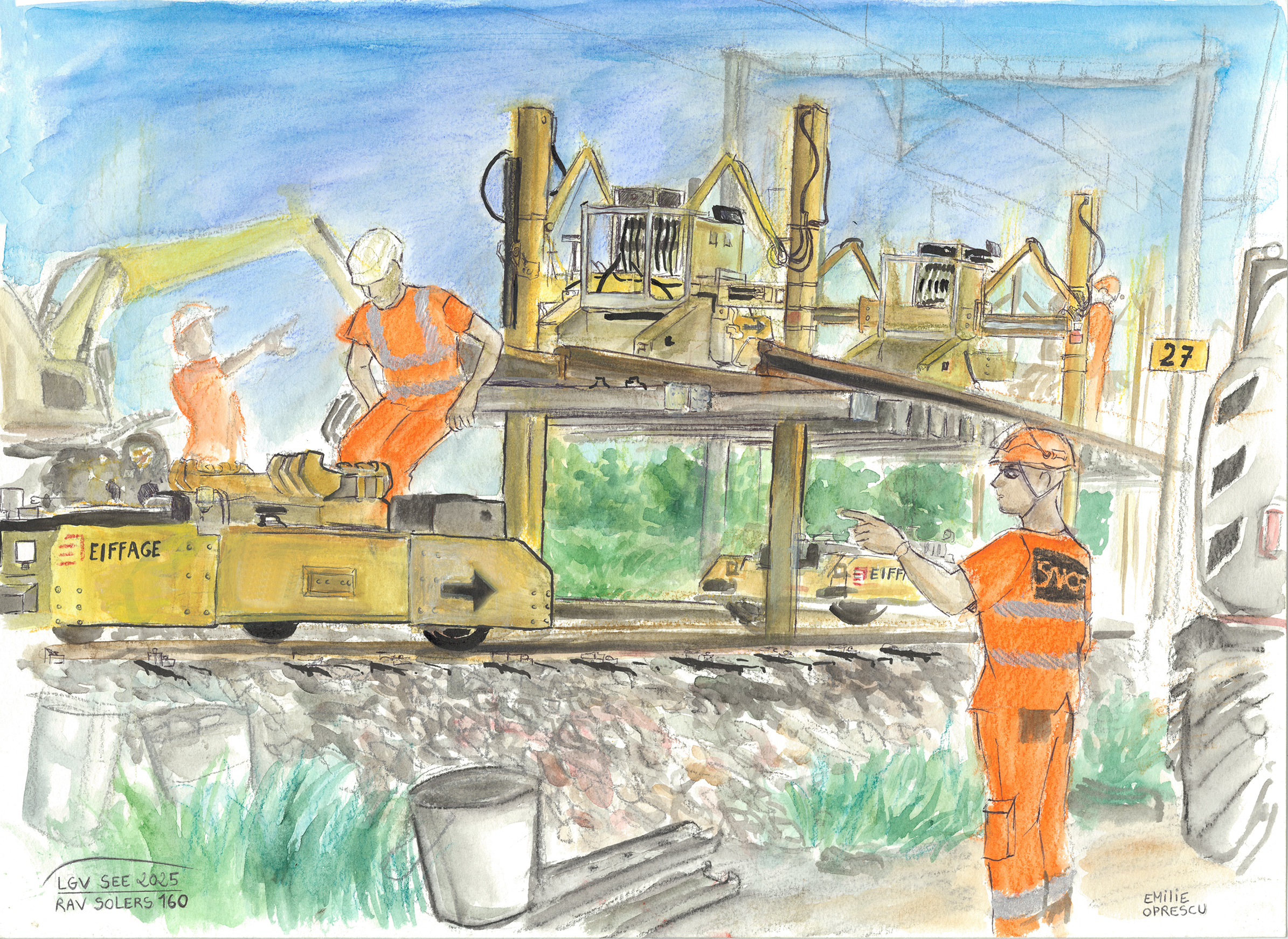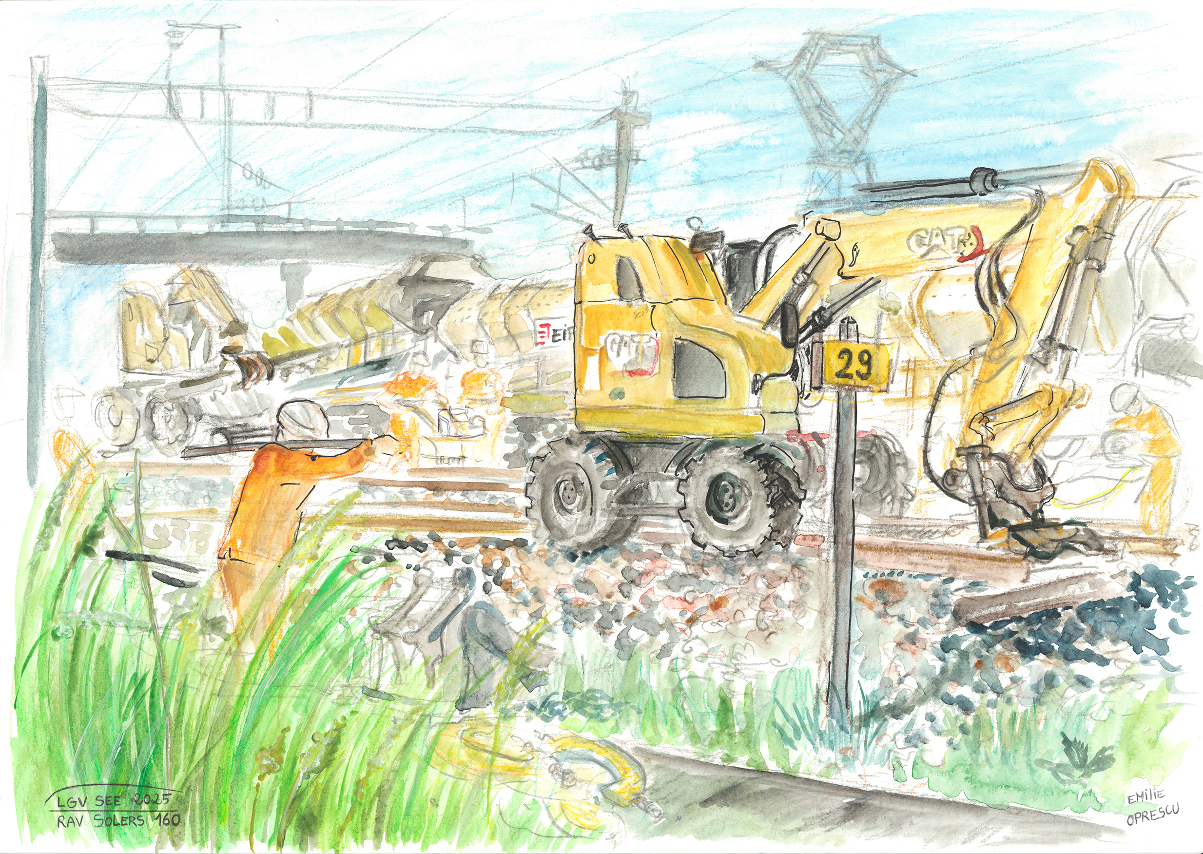 Le projet ; restituer les voies à 160 km/h contre 120 km/h habituellement. Une ligne Paris-Lyon bloquée le temps de quelques semaines de rénovation, de nouveau mise en service depuis juin 2025 ! Je suis intervenue en tant qu'aquarelliste pour capturer des instants de ce chantier ambitieux ainsi que les acteurs des opérations. Un grand merci pour la SNCF pour leur confiance renouvelée et pour cette expérience exceptionnelle !