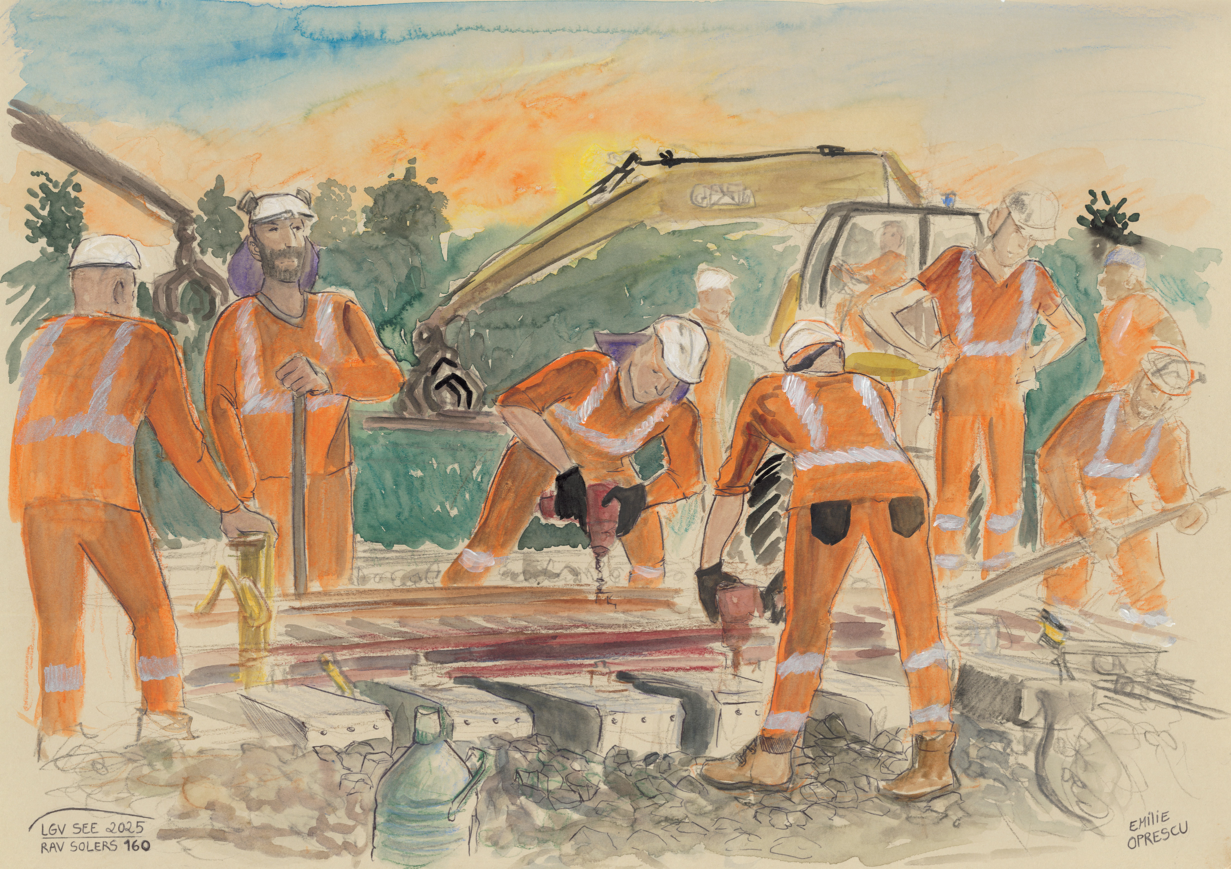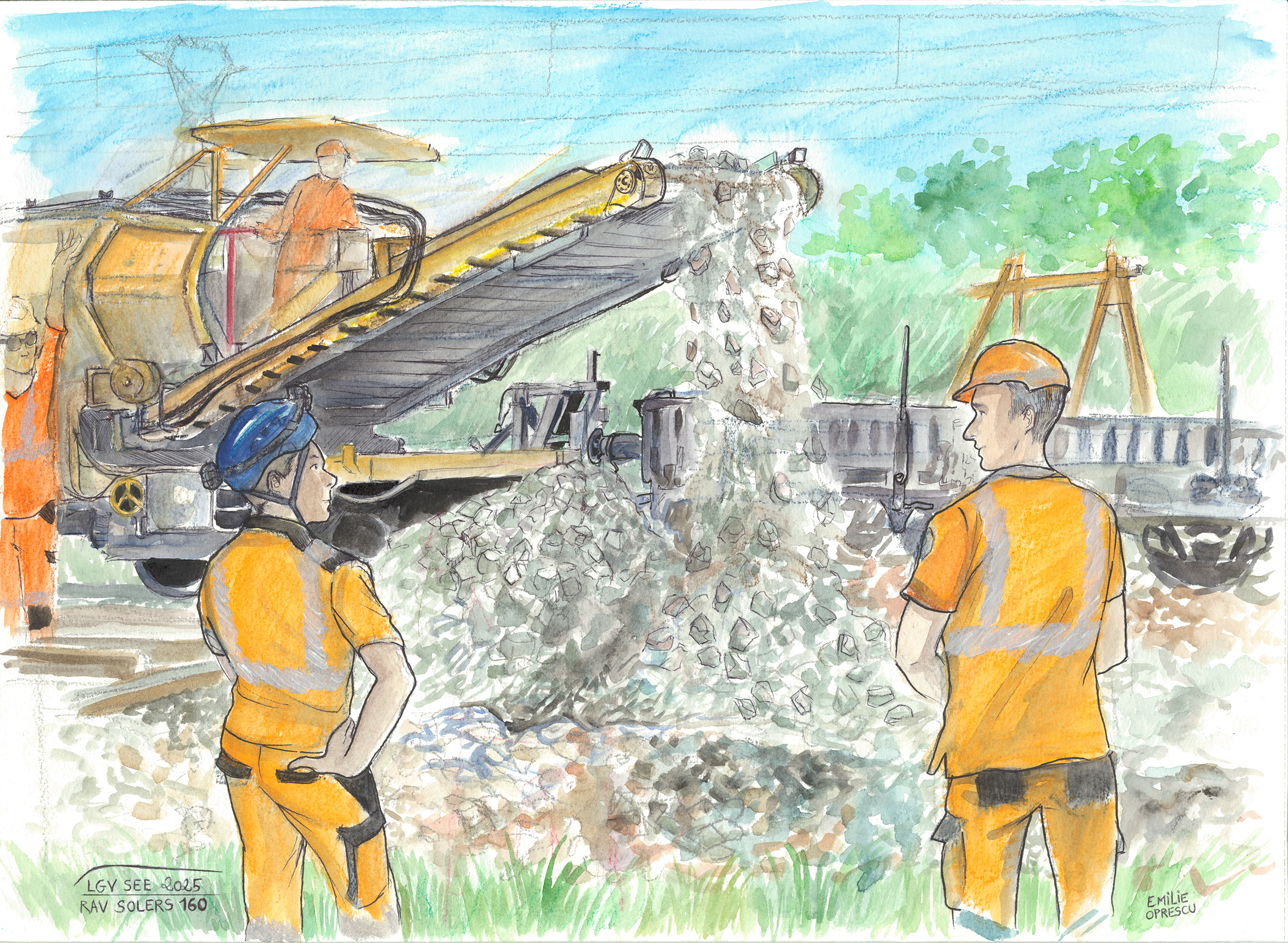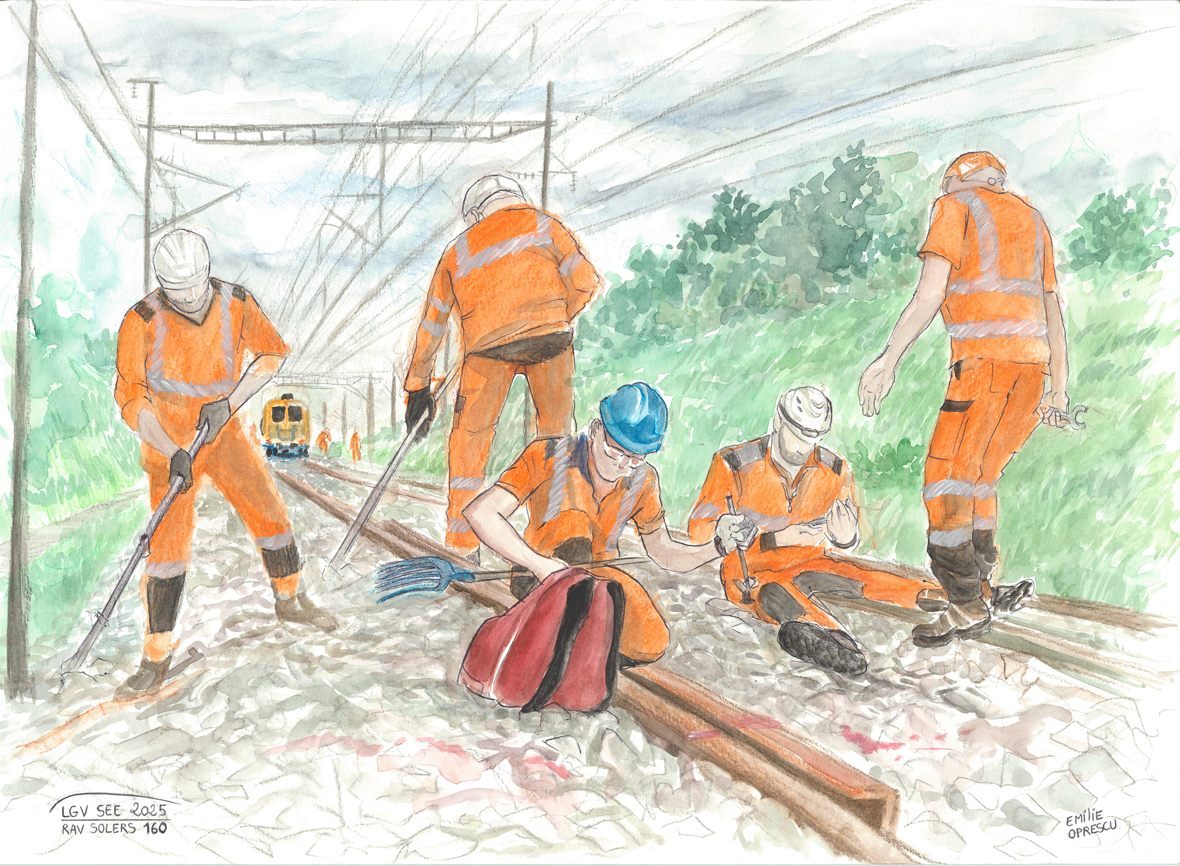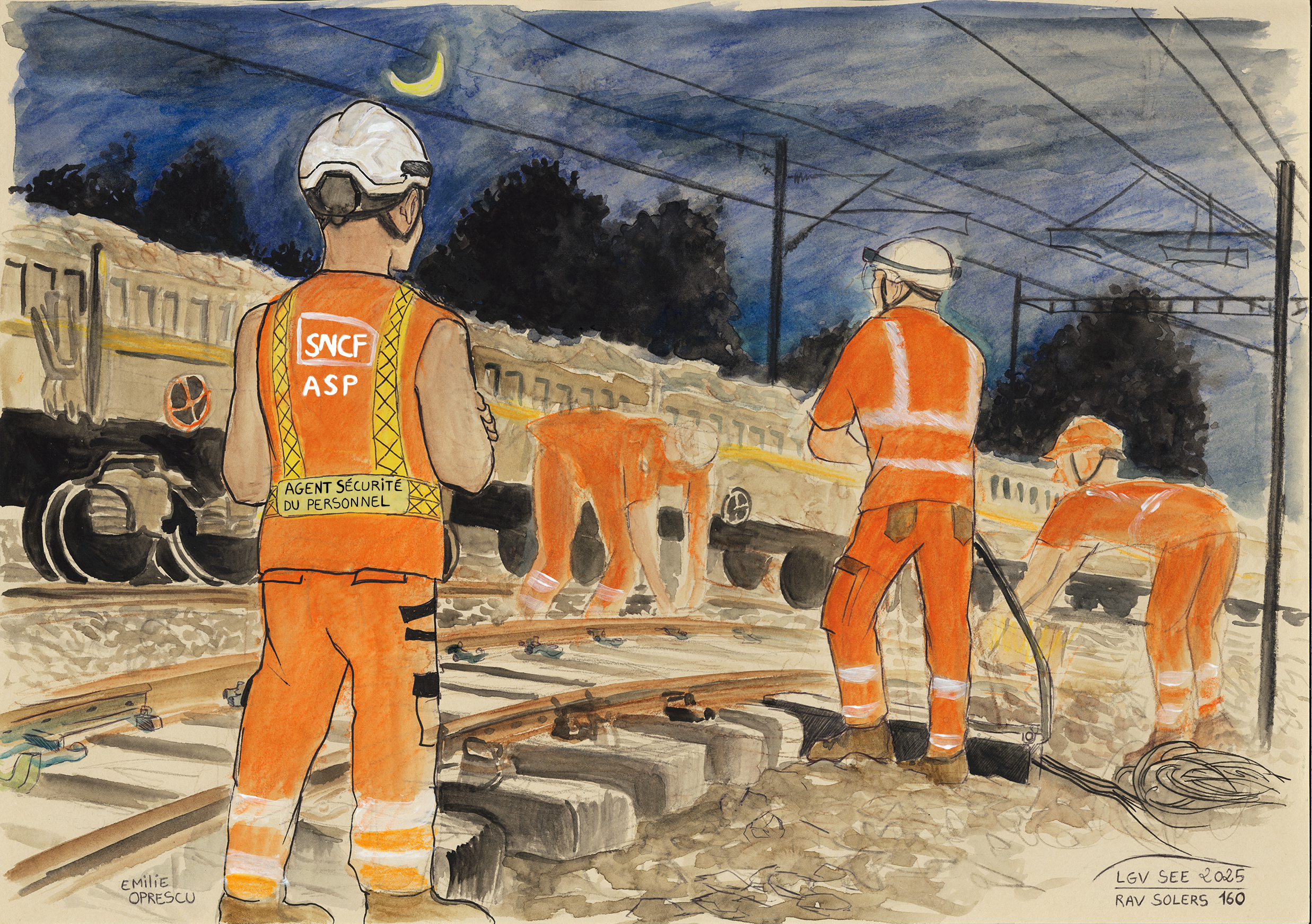 Le projet ; restituer les voies à 160 km/h contre 120 km/h habituellement. Une ligne Paris-Lyon bloquée le temps de quelques semaines de rénovation, de nouveau mise en service depuis juin 2025 ! Je suis intervenue en tant qu'aquarelliste pour capturer des instants de ce chantier ambitieux ainsi que les acteurs des opérations. Un grand merci pour la SNCF pour leur confiance renouvelée et pour cette expérience exceptionnelle !
